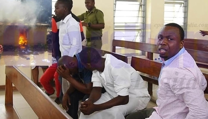 Baadhi ya watuhumiwa nane waliohukumiwa kifungo cha maisha kwa kosa la kuchoma moto kituo cha polisi.