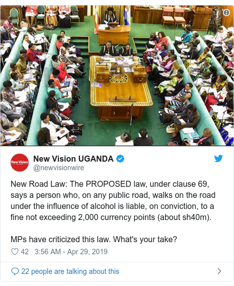 Gazeti la New Vision limeendeleza gumzo hilo katika mtandao wa kijamii wa Twitter kwa kuelezea sheria hiyo inayopendekeza kuwa mtu akipatikana na hatia atapigwa faini ya hadi dola 10,000 na pia kuwauliza wasomaji wake kutoa maoni kuhusiana na pendekezo hilo.