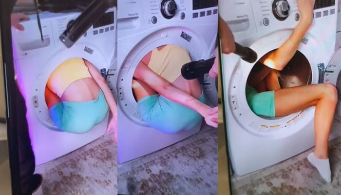 Video imesambaa mitandaoni ikimuonesha mwanamke mmoja akiwa amekwama ndani ya mashine ya kufulia nguo, bila kujulikana aliingia vipi kwenye mashine hivyo.
