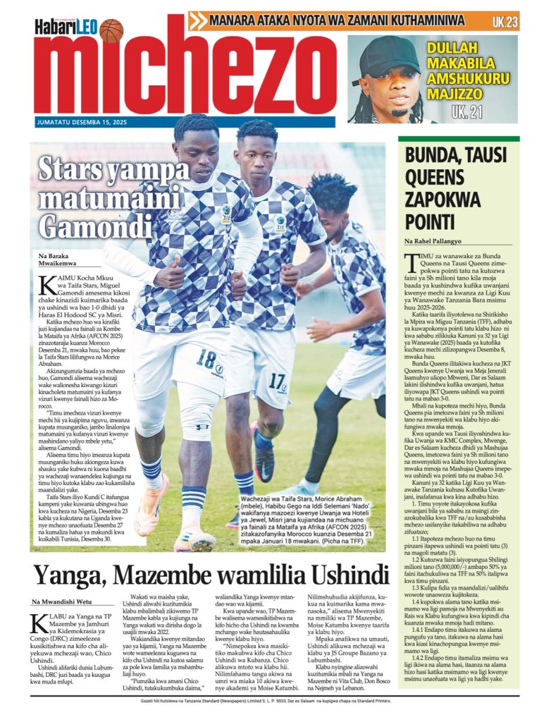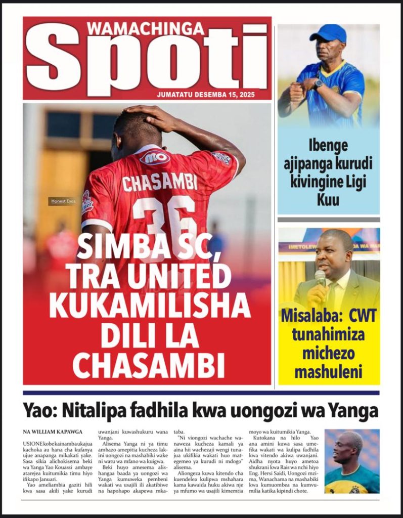 HAYA HAPA MAGAZETI YA LEO JUMATATU DESEMBA 15,2025